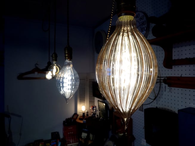 職人の手により、吹きガラスで作られた電球は、まるで100年前の電球と見間違えるほどのクオリティです。