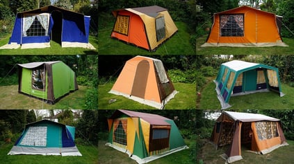 現在のテントにはない、色使いやデザイン。 魅力あふれるコットン幕をご覧ください。